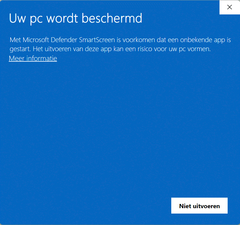 You get this dialogbox because there is many malware on the Internet, and Windows tries to protect you to running malware on your computer. Every exe-file that is unknown to Windows it is marked as possible malware.