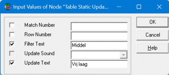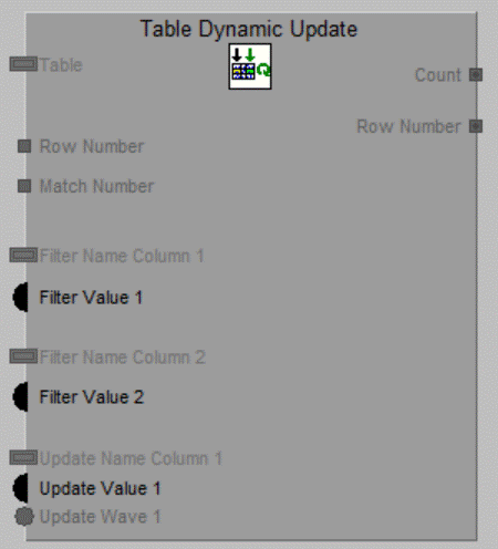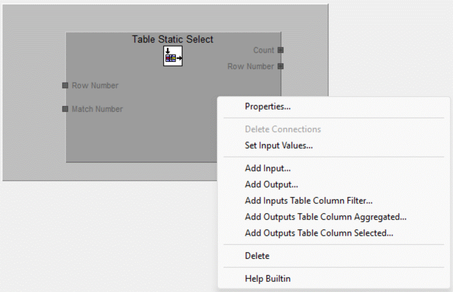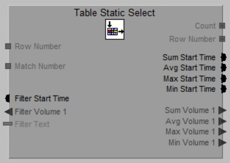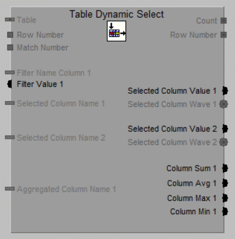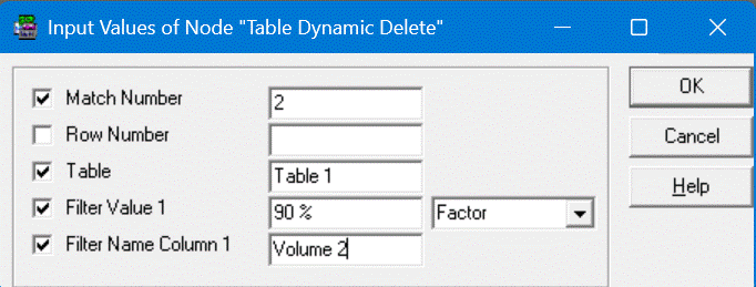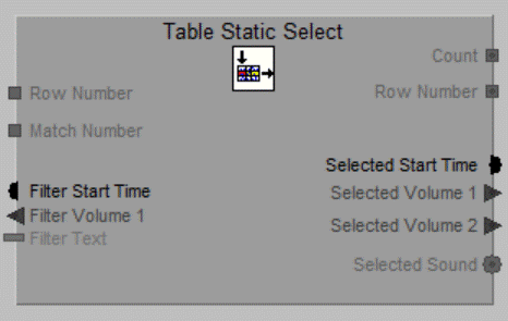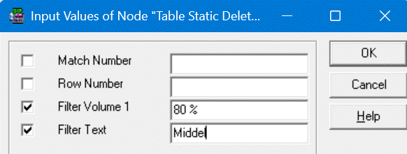 - When the Nodes has Column Filter Inputs, every value of the Input is compared to the value of the cell of every row. The row is only selected of all Inputs matches to all cell of the row. When a Column Filter Input has value Undefined, then the value of the cell of the row must also be Undefined. When you don't want to match the Filter Input to the cell, you must delete the Filter Input.