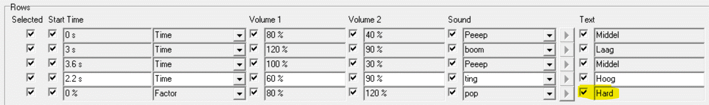 The fourth Row is added by the second Insert Node, you see that in Column Sound you see the text "boom", this means the Wave is refered to a Wave Window having the name "boom".