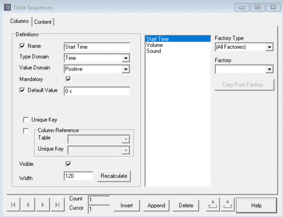 Copy From Factory, all existing Columns will be deleted!