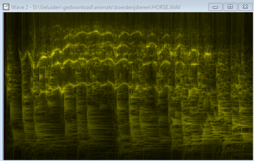 Here is a Volume-diagram of a running horse, vertical lines are footsteps, the few horizontal lines is the sound of the horse.